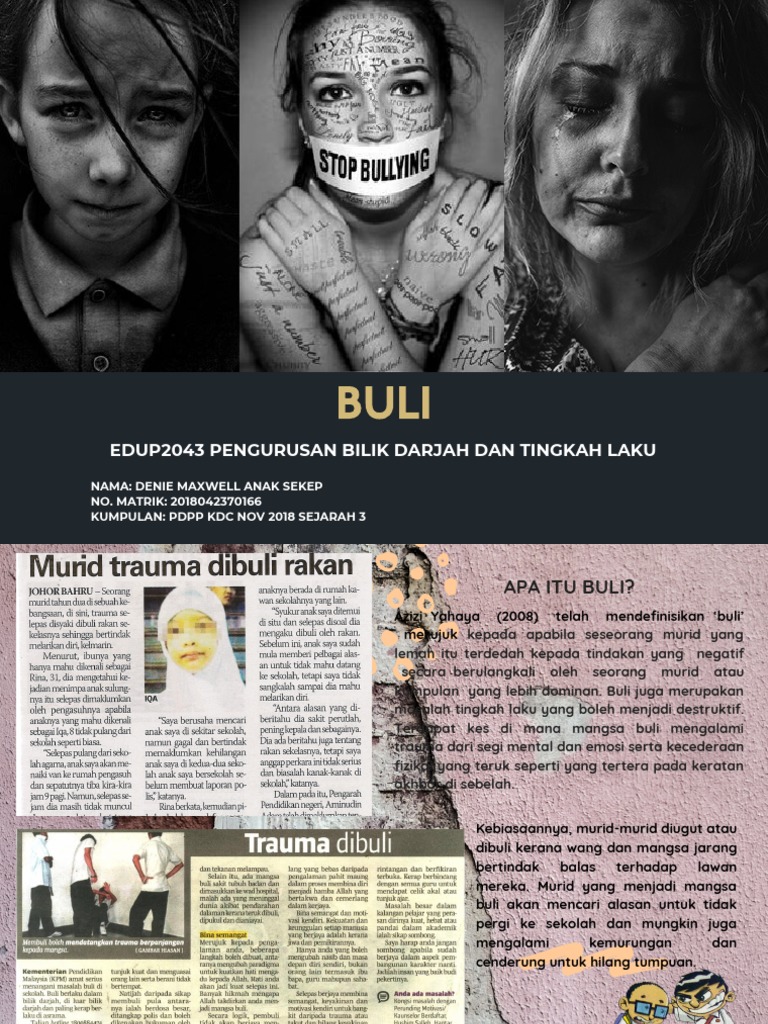 Kalendar aktiviti lihat aktiviti terkini. Jurnal psikologi malaysia 30 1 2016. Sekiranya pihak polis ingin mengambil alih kes buli di sekolah, kami para guru amat bersetuju. Kes buli kini semakin tenat dan menjadi kes jenayah. Keratan akhbar bulan ogos 2017.