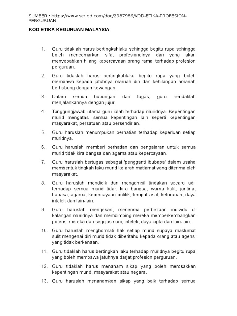 Related : Kod Etika Perguruan Pdf : Kod etika profesion perguruan malaysia..