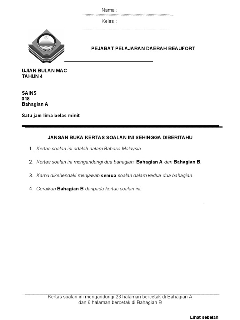 Bank soalan | sekolah rendah. Mulai tahun 2016 penilaian murid tidak lagi memfokuskan kecemerlangan akademik sahaja, tetapi turut melihat pencapaian mereka secara holistik sebagai seorang insan. Baca soalandenganteliti bahagian a kertas soalan ini mengandungi 8 halaman bercetak 1 1. See more of sains tahun 4 2019 on facebook. C kuantiti makanan dan air yang diberikan.