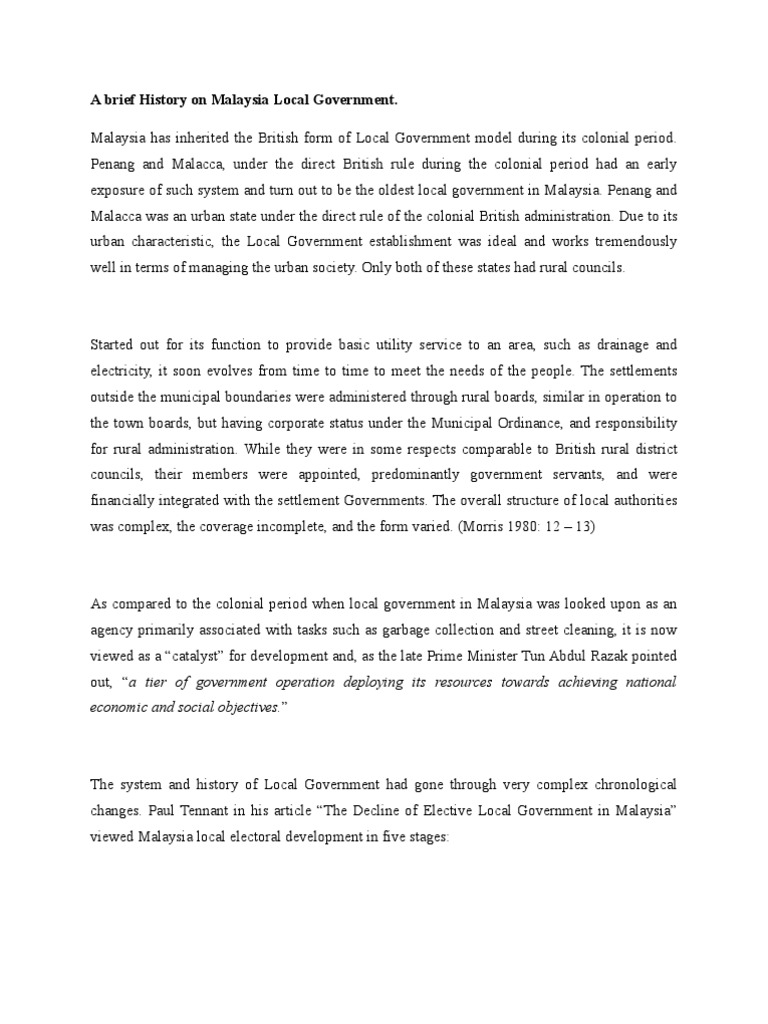 Local governments are generally under the exclusive purview of the state governments as provided in the constitution of. Kerajaan persekutuan malaysia), is based in the federal territory of putrajaya with the exception of the. The main function of local government is to stimulate economic growth and social development of a district. Discuss the objectives and function of a local government of your choice in malaysia by providing case study as your examples haize nurain binti che hassan 2016449306 nur afiah afifah binti masimen 2016449312 prepared for. A state ministry, the ministry of local government and housing.